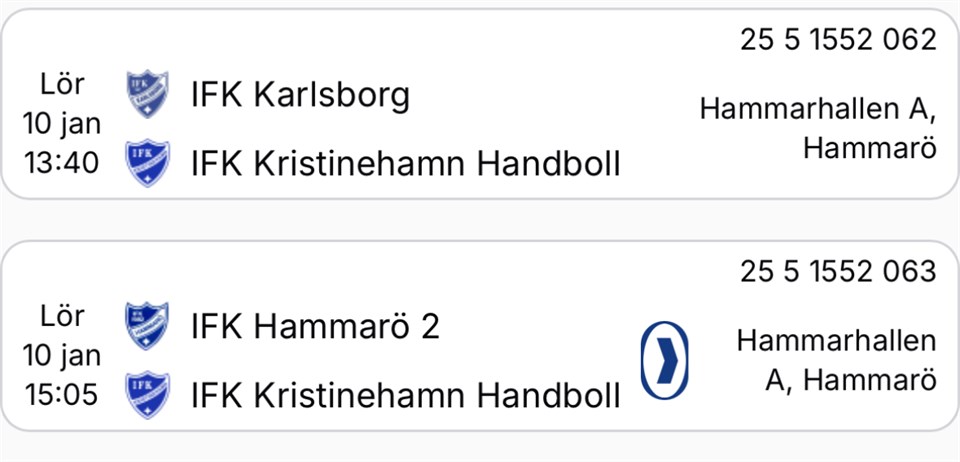 | IFK Hammarö 2 (borta) | 10 jan, 15:05 |