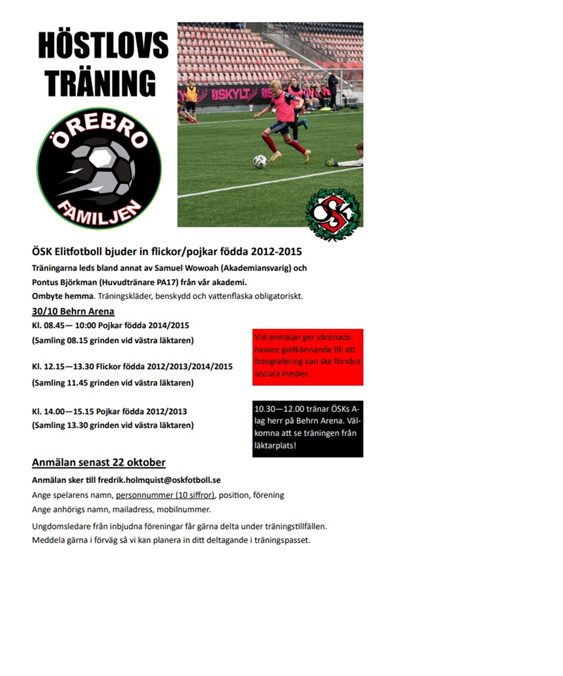 Följ oss för uppdateringarTräning | 15 okt, 18:15 |