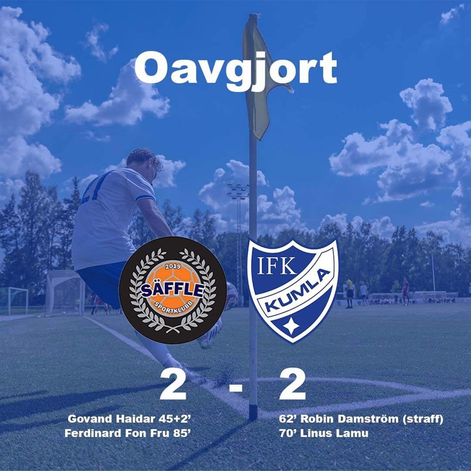Herrarna spelade 2-2 borta mot Säffle. En otäck skada på målvakt Emil Blomberg i slutet av den första halvleken resulterade i ambulans till Karlstad med befarad hjärnskakning. Vi önskar Emil snabbt tillfrisknande.