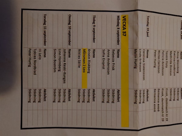 Glöm inte städning i klubbhuset. Jag bifogar en bild på schemat.