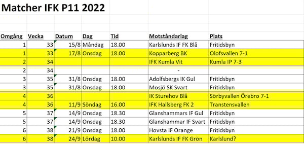 Kan lägga till att vi valt att lägga matcherna i veckorna för att hålla helgerna rena och så har vi försökt att pussla så det går att delta på andra idrotter utan att barnen ska behöver välja.