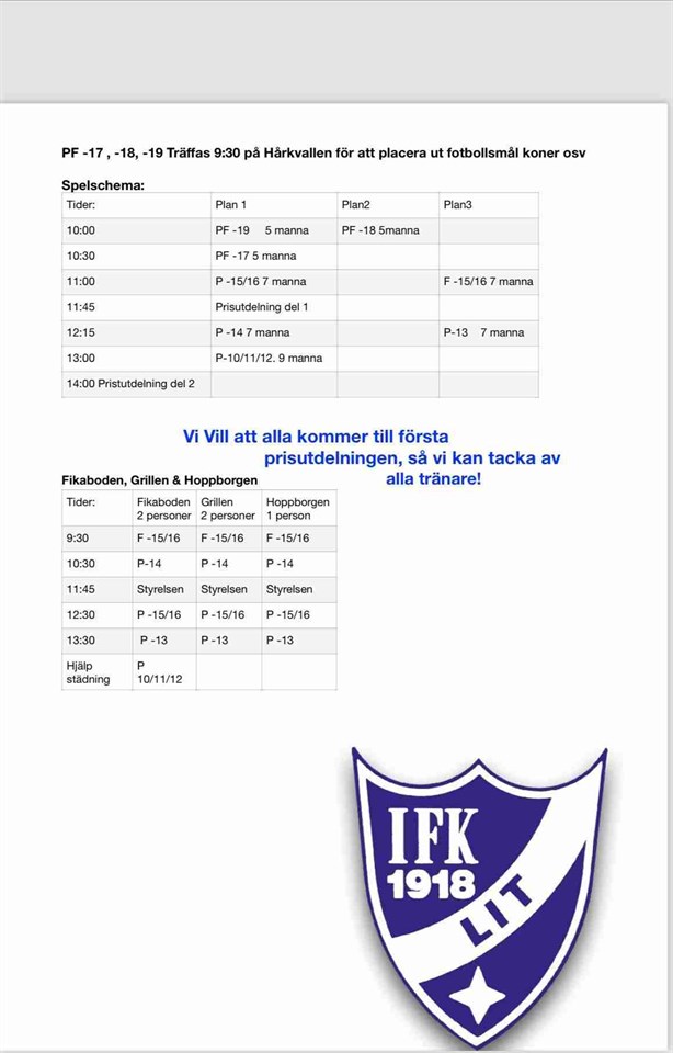 Klicka på bekräftelselänken i det mejl vi skickat dig för att börja ta emot uppdateringar från IFK Lit P/F 19.