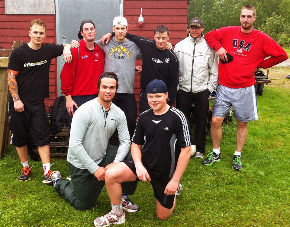 IFK Munkfors barmarksträning har pågått sedan den 14 maj. Totalt 29 personer har deltagit i de 19 passen. Måndagen den 25 juni var det sju spelare som trotsade det envetna regnandet. IFK Munkfors sportgrupp har valt att satsa mer på barmarksträningen och därför anlitat Andreas Larsen, 39, som barmarkstränare. Han har ett förflutet som bandyspelare och bandytränare på hög nivå. Måndagen den 14 maj genomfördes det första barmarkspasset vid Klingevi. Sedan dess har det blivit två fys- och konditionspass samt ett innebandypass per vecka. Totalt 19 pass hittills. Deltagarantalet har ökat allt eftersom. De senaste veckorna har fys- och konditionspassen lockat cirka tio spelare per tillfälle. Innebandypassen har oftast lockat några fler. Totalt har 29 personer deltagit. Träningsflitigast: Johan Larsson, 18 pass. Måndagen den 25 juni var det sju spelare som trotsade det envetna regnandet. Tillsammans kämpade de på med att välta traktordäck, hoppa häck, utfallssteg med ett tungt järnrör på axlarna, snabba fötter i ringar etc. De sju som deltog ses på bilden. Stående från vänster: Stefan Olsson, Magnus Karlsson, Falunspelaren Stefan Wennerström, Anders Widerström, Andreas Larsen, Johan Larsson. Sittande: Robin Törnkvist, Viktor Chragin-Hansson. Många spelare har uttryckt sig väldigt positivt om Andreas Larsens träningar, som är tuffa men ändå roliga. Förhoppningsvis blir det ännu bättre uppslutning framöver!