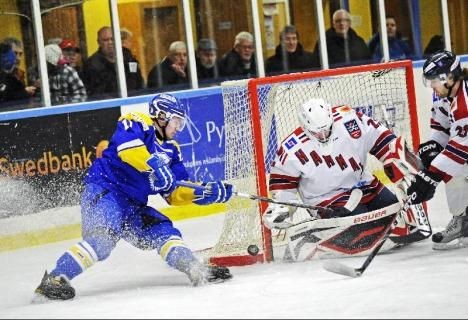 IFK Munkfors föll i den första av två playoff-matcher mot Hammarö HC. Gästerna vann den heta drabbningen med 4-1. Ställningen efter den första perioden var 1-2. I andra perioden skapade Munkfors ett flertal chanser, utan att lyckas göra mål. Istället kunde Daniel Thunberg göra 1-3 efter 16.27. När Emil Lindahl satte 1-4 tidigt i tredje perioden kändes matchen avgjord. Matchen var het och spelades i ett högt tempo, även om Munkfors mattades av i sista perioden. I Hammarö utmärkte sig målvakten Henrik Hedenskog (30 räddningar) och forwarden Oskar Södergren (1+2). Bäst i Munkfors var målvakten Johan Kervestig (36 räddningar) och centern Daniel Donborn. Noterbart är att Munkfors saknade backen Patrik Olsson (jobb), centern Niklas Skoog (utbildning) och centern/forwarden Marcus Hagberg (skada). Efter matchen sa Peter Hertzberg följande till Värmlands Folkblad: – I andra perioden spelade vi riktigt bra. Skapade en straff och frilägen, men istället fick vi ett skitmål emot oss. Annars kunde det ha blivit en helt annan match. Han fortsatte: - Samtidigt är vi kort om folk och det håller inte riktigt när tempot är högt. Men det är en helt ny match på måndag! Glädjande är att 232 åskådare fanns på Klingevis läktare – klart bättre än snittet på 152 åskådare. För att läsa VF-artikeln om matchen, klicka här! Bilden ovan är tagen av VF-fotografen Peter Bäcker. Matchfakta: Munkfors-Hammarö 1-4 (1-2, 0-1, 0-1) 0-1 (4.20) S.Ahlberg (O.Södergren, M.Nilsson) 1-1 (8.04) E.Sätterman (S.Olsson, T.Forss) 1-2 (9.07) O.Södergren (M.Nilsson, M.Svanegård) 1-3 (36.27) D.Thunberg (O.Södergren) 1-4 (42.44) E.Lindahl (M.Karlsson) Skott: 31-40 (13-10, 12-16, 6-14) Publik: 232