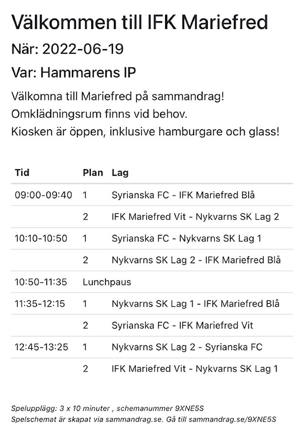 Sammandrag söndag -info -lagindelningen-arbetsschema