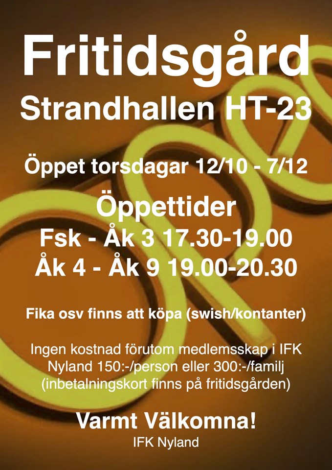 12 oktober slår Fritidsgård Strandhallen upp dörrarna hösten 2023! Välkomna! IFK Nyland 4 okt 2023 0kommentarer