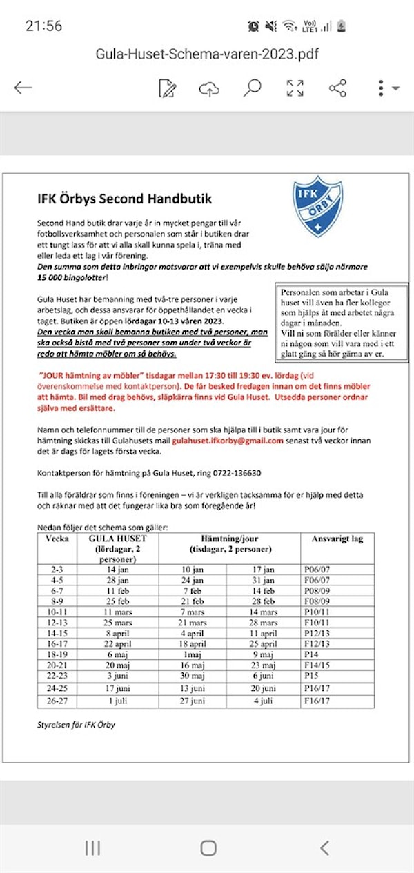 Bifogar även lite information ifrån Ifk Örby angående gula huset.