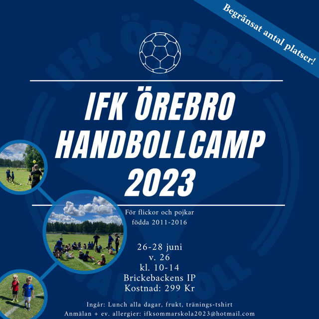 För flickor och pojkar födda 2011-2016. 26-28 juni 2023, vecka 26. Klockan 10,00-14,00 på Brickebackens IP Kostnad 299:-. I det ingår lunch alla dagar, frukt, tränings t-shirt. Anmälan + ev.allergier till ifksommarskola2023@hotmail.com