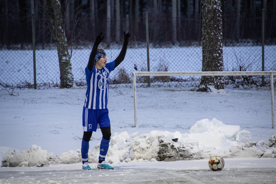 På ett soligt Kisa IP möttes IFK Österbymo och återuppståndna Horn/Hycklinge för en träningsmatch under lördagen. Horn/Hycklinge har inte haft ett A-lag sedan 2019 men började träna igen under hösten 2022. Lördagens match var den första för det nygamla laget på cirka tre år. Efter att hemma- och bortalag fått känna på varandra på en fin och jämn konstgräsplan tryckte IFK Österbymos Dennis Öst in 1-0 redan i fjortonde minuten. Målet kom på frispark. – Härligt att Dennis fick sätta den så tidigt i matchen, även om det kanske inte kommer att bli framröstat till årets mål, säger assisterande tränare Johan Friberg med ett leende efter matchen. Dagens andra IFK-mål kom drygt tjugo minuter senare. Även det gjordes på frispark. Motståndarlagets målvakt ställde upp muren precis framför sig själv vilket gjorde att Armin Aljovic, placerad precis utanför boxen, enkelt kunde raka in 2-0 i 36:e minuten. Strax innan, i minut 34, kunde det också ha blivit mål. Då kom dagens debutant Noah Liljeblad (född 2009) ren med motståndarmålvakten. Liljeblad hade bytts in i 25:e minuten. Horn/Hycklinge lyckades dock avstyra och målvakten plockade istället skottet i famnen från nära håll. Under första halvlek styrde IFK Österbymo större delen av matchen och kunde gå ut i halvtid med två mål mot noll. Andra halvlek glittrade inte lika mycket för IFK:s del, men Horn/Hycklinge lyckades inte ta över taktpinnen för det. En jämn andra halvlek avslutades istället med att en straff dömdes i 86:e minuten. – Den var inte helt självklar. Den kändes mer som att domaren ville att våra motståndare också skulle få med sig något i dag, kommenterar huvudtränare Henric Dahlstedt situationen. IFK:s målvakt Ludde Ek hade en fin match med många bra aktioner, och han gjorde vad han kunde när straffen skulle slås mot honom. Straffen gick ändå in. När slutvisslan blåste några minuter senare stod det 2-1 till IFK Österbymo, och segern i årets andra träningsmatch var ett faktum. – Efter matchen pratade vi med grabbarna om att vi måste bli bättre på att diktera matchtempot själva. Vi måste styra med vårt spel, och hålla ett fastare grepp om taktpinnen. Om vi ska vinna serien kan man inte låta sig vaggas in i ett motståndarlags lägre tempo och vila i det. Sådant spel kan man komma undan med i en sådan här match men inte mot ett bättre lag. I den här matchen ska vi kunna prestera en storseger och det hade gärna fått stå 6-0 istället för 2-1. Men det var också många imponerande spelvändningar och moment av grabbarna i dag så vi har mycket fint att bygga vidare på under kommande träningar, summerar Henric Dahlstedt.