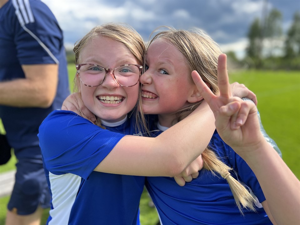 Vilken match vi fick se idag, säsongens sista match var kanske den allra starkaste. Tjejerna fick visa vad de lärt sig, de vågade och tog för sig. Framörallt har de växt samman till en härlig grupp, trots en lite otydlid start. Det är sannerligen ett nöje att få hänga med dem. Nästa vecka är det inga träningar, på grund av fotbollsskolan. Veckan efter midsommar tränar vi tisdag och torsdag, sen är det sommaruppehåll. Idag rymde tjejerna från lagfoto, men jag tycker Esther och Maja väl representerar känslan i laget. Vi kör in i kaklet - med hjärta och glädje! Vi ses!
