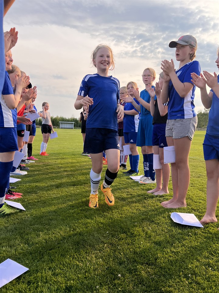 Vilken kväll vi fick i tok-hettan! Fina matcher, glada tjejer och allmänt supertrevligt! Extra fint när de fick ta emot ett litet sommarbrev och fotbollskort till kompisarnas applåder. De här tjejerna ÄR stjärnor, allihop! Nu rundar vi av säsongen och önskar alla en riktigt fin sommar. De som missade avslutningen kommer få sitt lilla "fotbollskort" på annan väg. Ta hand om er så ses vi igen i augusti!