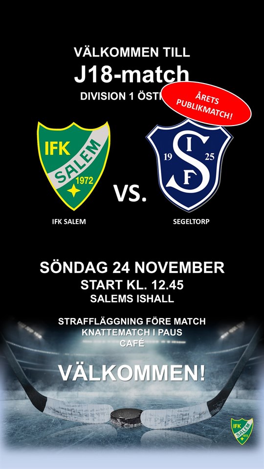 Välkommen till årets publikmatch för vårt J-18 lag som möter utmanande Segeltorp söndag 24 november.