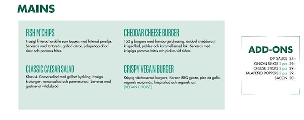 Mat tjejerna kan välja mellan är: