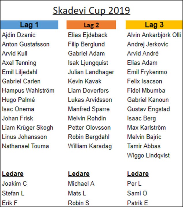 Hej, Skadevi Handbollscup, 1-3 nov, närmar sig och vi ledare har nu gjort en preliminär lagindelning (se bild ovan). Det kommer att gå ut separata kallelser för respektive lag med plats och samlingstid för första matchen på fredagen. För mer info om cupen, spelchema osv klicka in på Skadevis hemsida. https://www.skadevihandbollscup.com/ //Ledarna AP2/U16 2425 22 okt 2019 0kommentarer