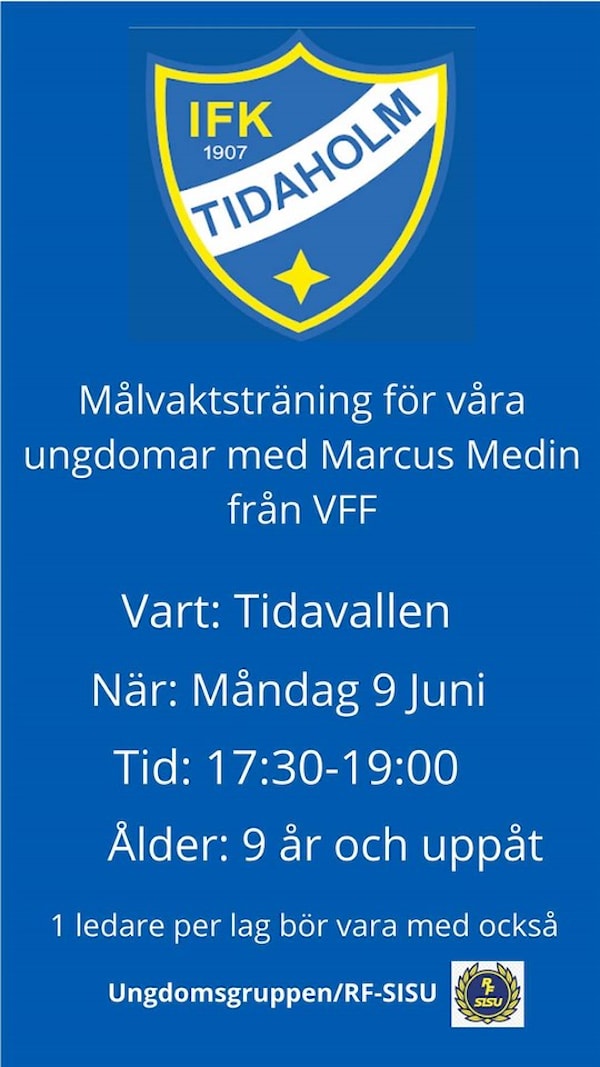 Välkommen till en ny omgång av målvaktsträning. Meddela någon av oss tränare om du kommer vara med.