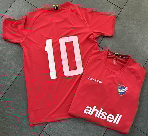 Våra snygga bortatröjor. Tack till Gustavs pappa som ordnat sponsring av Ahlsell.