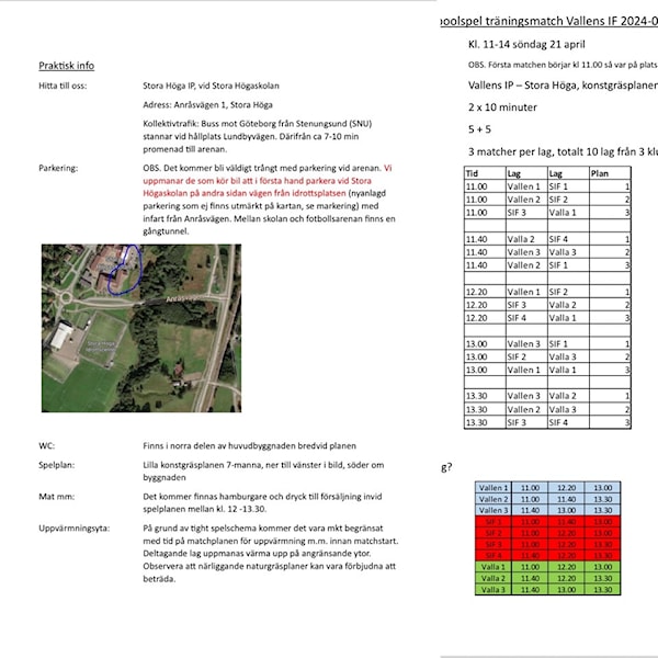 Bifogar lite information inför söndagens träningsmatcher mot Vallen & SIF.