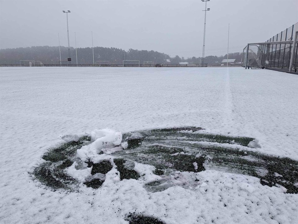 Kan knappt tro att det är sant, igår tränades det i shorts och t-shirts och idag behöver vi ställa in träningen för att hela planen är täckt med blötsnö. Vi får hoppas att våren återkommer snart!