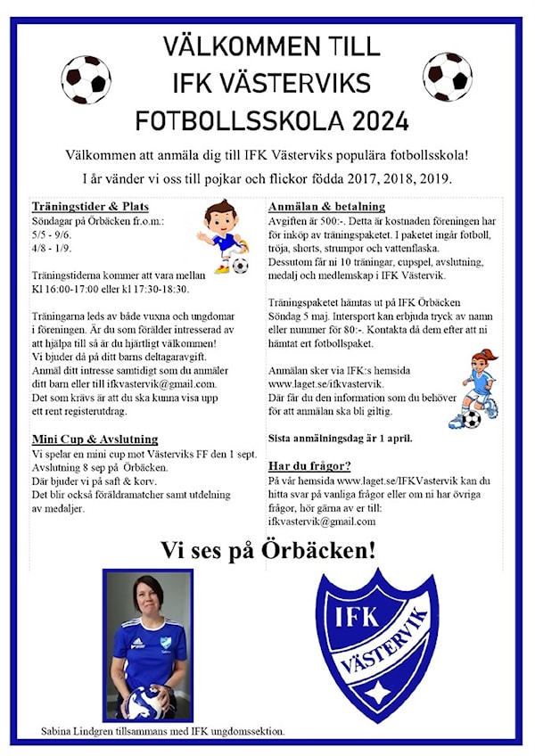 Fotbollsskolan 2024, sista anmälningsdag 1 april
