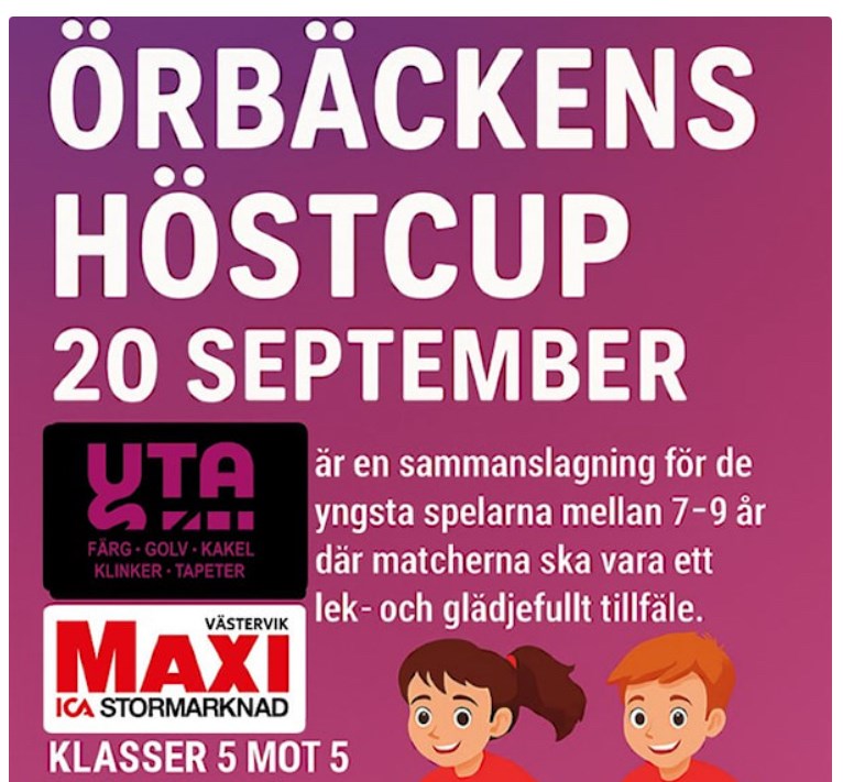 På lördag 20 september kl 10-16 är det dags för Örbäcken cup. Vi spelar i tre klasser: