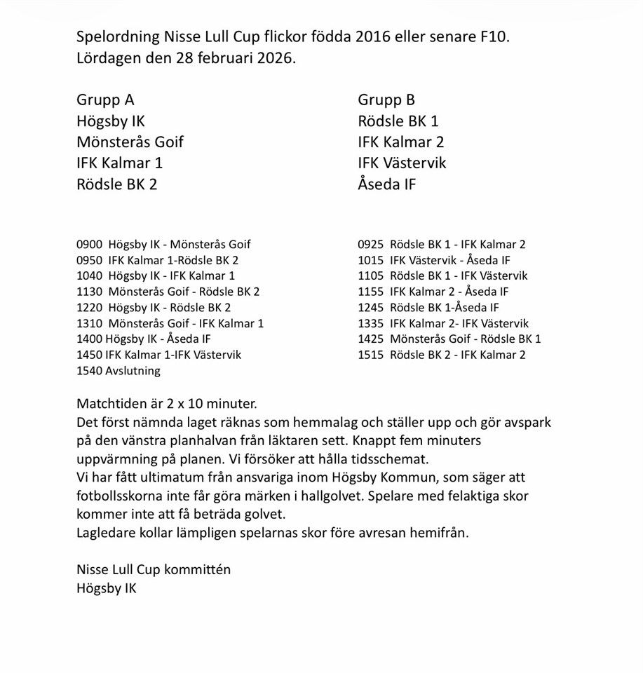| Nisse Lull Cup - avresa 07:45 | 28 feb, 10:15 |