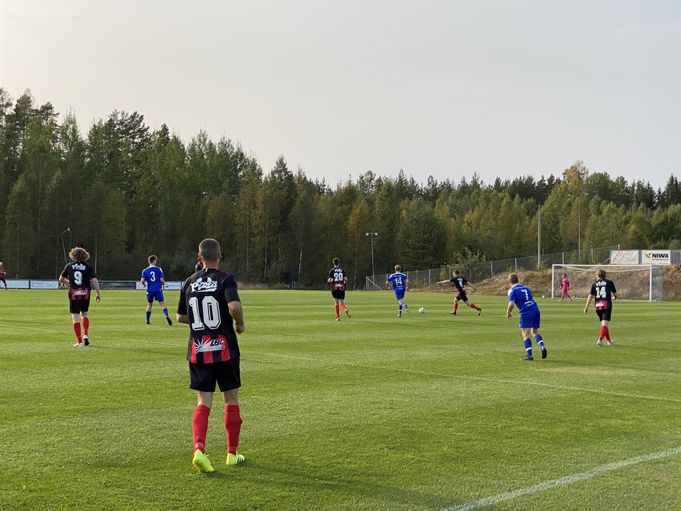 Match: Rännbergs IK - IFK Velen 2-1 (1-0) Div5: 9:e omgången Dag: 13/9 Tid: 16:00 Plats: Åsbyvallen Väderprognos: 16° Domare: Selma Griberg Startelvan: Roine, Hult, Anders, Daniel, Lennie, Emil, Andreas, Martin Johansson, Dick, Gustav och Jonas E. Avbytare: Robin, Adam, Johan, Martin Jakobsson och Fredrik. 1-0 Olle Persson (24) 1-1 Fredrik Johansson (74, straff) 2-1 Henry I (90+2, straff) En tung förlust på tilläggstid i derbyt mot Rännbergs IK, en tuff dömd straff på tilläggstid avgjorde derbyt och ger hemmalaget fördel inför dom två kvarvarande matcherna. Vi förtjänade så mycket mer men när vi bommar så många chanser så straffas man till slut. Det var hemmalaget som inledde matchen bäst, vi var lite tagna av stundens allvar, Roine fredade vårat mål i den 8:e minuten med en bra räddning. Vårt första försök till anfall kom två minuter senare när bollen drevs från våran vänstra sida till den högra sida, vi fick ut en hörna som Daniel nickar ner mot gräset och den håller på att gå i mål men den smiter strax över. I den 15:e minuten fick vi prov på att vi hade rätt tanke med att ha Jonas mot Nikola, den först nämnde lyckades ta sig förbi mittbacken på ren vilja och passa ut till Emil som drev bollen ner mot kortlinjen och slog ett inlägg som rensades ut till hörna. Det blev ingen finlir idag, och dom kommande tio minuterna blev ett bevis på det när det blev mycket kamp. Tyvärr så tappar vi bollen när och där man inte får göra i den 25:e minuten, laget är på väg upp och bollen hamnar hos duktiga Olle som kliver inåt plan nån meter och fick på en bra skott som Roine inte hade någon chans att ta. Vi hänger med huvuden och hemmalaget är nära att utöka men Roine räddade långskottet. Vi gjorde ett byte efter halvtimmen spelad Johan kom in istället för Martin J. Resten av halvleken händer det inte så mycket mer och 1-0 stod sig halvleken ut. 2:a halvleken började mer eller mindre med att Hult bryter vad som höll på att bli en farlig kontring. Sedan tycker jag att vi tar över matchen fullkomligt och är otroligt nära 1-1 i den 53:e minuten när Gustav kommer loss på högra sidan och slog ett lågt inlägg som nådde Jonas, som i en snäv vinkel skjuter i stolpen och returen hamnade hos Nikkis famn. Minuten senare är det en snarlik anfall från bår höger kant men denna gång blir det flipperspel i straffområdet men vi kom inte till någon avslut. Vi är nära kvitteringen igen i den 63:e minuten på en frispark som ger målvakten problem men han fångade in bollen till slut. Nu hängde det en kvittering i luften. Vi plockade ut Emil och satte in Fredrik i den 64:e minuten, samtidigt byte vi plats på Daniel och Jonas. En ändring som höll på att resultera omgående när Daniel och Fredrik gick upp på samma boll och störde varandra så att nicken blev tämligen enkel att rädda. I den 70:e minuten så var det Gustav som testade med ett avslut som målvakten räddade utan problem. I den 74:e minuten blev Daniel fasthållen när han lyckades klämma sig emellan bollen och försvaren i straffområdet, domaren tvekade inte och blåste straff. Fredrik steg fram och satte straffen behärskad i mål, 1-1 och 15 minuter kvar att spela! Inget av lagen var nöjda med resultatet så det blev en små dramatisk sista kvart där det skapades två jätte chanser, den första är hemmalagets och det är Roine som räddade till hörna i den 77:e minuten. Tio minuter senare så fick vi en hörna där Adam kommer högst och nickade strax utanför. På tilläggstid så kom hemmalaget i en längre anfall och väl inne i straffområdet när en spelare slagit inläget blev han tacklad, domaren tvekade någon sekund innan hon blåste straff, omöjligt från min position att avgöra, kändes hårt att blåsa straff. Det var nervöst hos hemmaspelarna för det var ingen direkt som ville ta straffen, till sist steg nyförvärvet Henry fram och gav Rännberg segern.