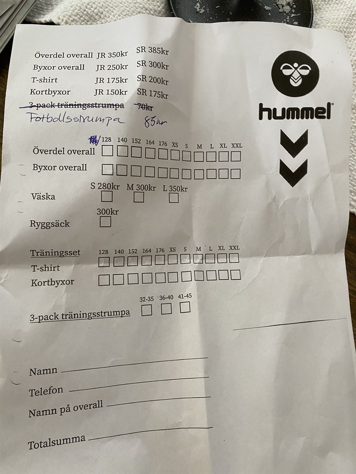 Hej på er! Denna vecka finns det kläder att prova på Leksbråten för den som önskar att beställa. Kläderna ligger på övervåningen i bardelen. Vi tränar tisdag kl 18 och torsdag kl 17 denna vecka så prova gärna kläderna innan träningen. Vi kommer ha en lista på plats som man kan fylla i så tar vi med den till Prima sen. Jag lägger med bild på priser så ser ni. Mvh Tomas och Anton F-2012/2013 28 apr 0kommentarer