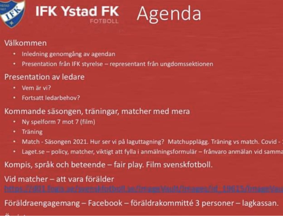 Hej ... Här kommer dagordningen för lördagens föräldra möte, nedan på bilden kan ni se våra punkter som kommer ingå på detta möte. Vi kommer skicka ut anmälan "närvaro" till detta möte då vi ledare anser att det är av högsta vikt att detta föräldramöte prioteras och vi antar att och förmodar att deltagare antalet kommer vara stort på lördag. Väl mött Ledarna