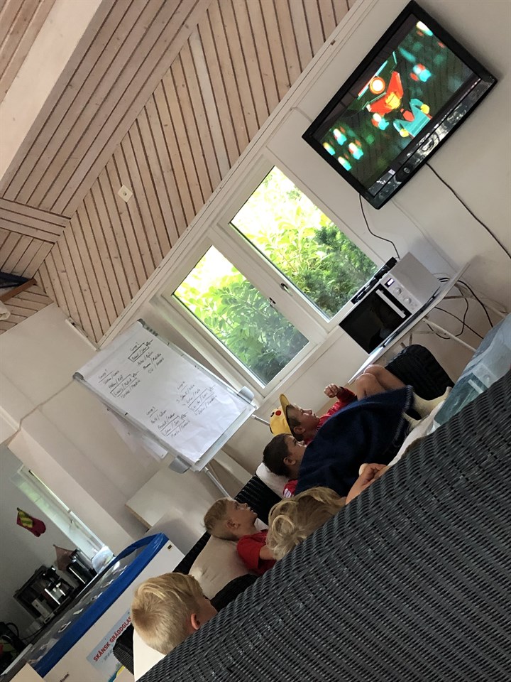 Trötta men glada barn som varvar ner med filmkväll. Allt har gått hur bra som helst! Hitintills.. 😅