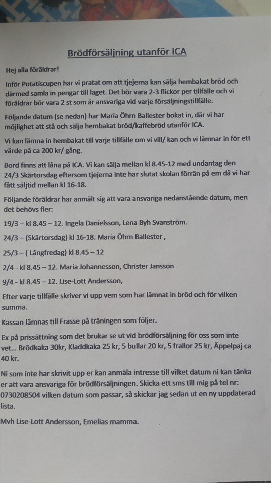 Här finns listan på försäljningsdagar ni som inte står med kan kontakta mig (Frasse) så fixar jag det att ni får en dag som passar. F02 13 mar 2016 0kommentarer