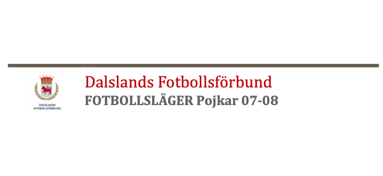 Dalslands Fotbollsförbund bjuder in till Fotbollsläger för killar födda 07 och 08 där vi samlas och tränar samt spelar matcher tillsammans med andra killar från vårt distrikt. Alla är välkomna och vi kommer att blanda trupperna så man får spela med nya kompisar. Max antal spelare 40 st När - Var - Hur Träningarna genomförs med blandade trupper och vi fokuserar på att ha roligt och att ha lite olika teman. När: Söndag 26 september kl 13.00 - 15.00 Var: Bäckefors, Bäckevallen naturgräs. Hur: Vi varvar träning med matcher och lite teori kring fotboll. Ombyte sker hemma och ni tar med er kläder för väder. Omklädningsrum och toaletter är öppna. Vi maximerar antalet deltagare till 40 st. Om intresset blir stort kan vi eventuellt lägga in ytterligare ett tillfälle. Först till kvarn gäller. Anmälan sker på via IFK Åmåls kansli. Kostnaden är 200:-. Du betalar till IFK, så betalar IFK sedan Dalslands FF. Sista anmälningsdag torsdag 23/9. P07/08 9 sep 2021 0kommentarer