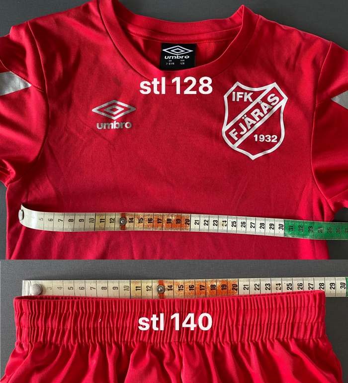 Fick till mig de storlekar jag skrev i nyheten från kanslit, där låg inte storlek 140 med, men antar att den finns då man kunnat beställa den, om någon undrar hur jag kan ha mätt på en storlek som inte legat med i informationen att beställa... Försökt hålla det tydligt och enkelt, men inte så lätt märker jag. Har två shorts hemma med 140 i storlek både vanliga och matchshorts. Hopps att bilden jag lagt upp nu ska göra det lättare iaf.