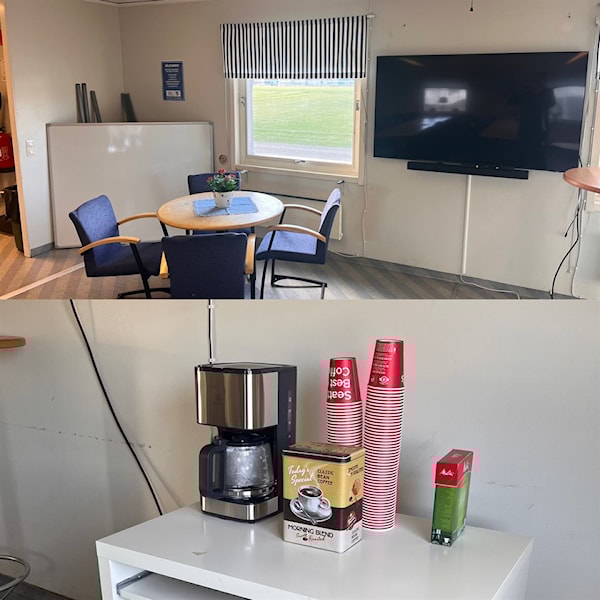 Den gamla tv:n sitter kvar och vid den finns nu också ett kaffebord med kaffebryggare. Den är fritt fram att använda till era föräldramöten, ledarmöten eller andra aktiviteter. Sköter vi detta tillsammans och ser till att skölja ur kannan och slänga filter efter användning så kommer det här att fungera alldeles utmärkt. Tillsammans hjälps vi åt.