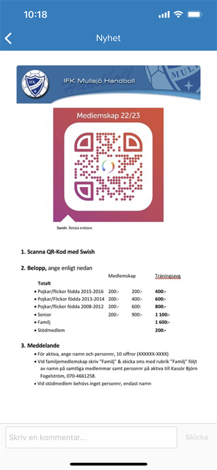 Hej, Här följer information och beskrivning på hur ni betalar in medlemsavgiften för årets säsong. Familjemedlemskapen är insklusive träningsavgift och finns ingen begränsning förutsatt att alla är skrivna på samma adress. Det är flera som redan betalat in medlemsavgiften, jag har noterat dessa: Stina Elina Mollie Meya Elvira Majken Minih Leia Noomi Är det någon jag har missat så höjta till, övriga betalar in snarast!