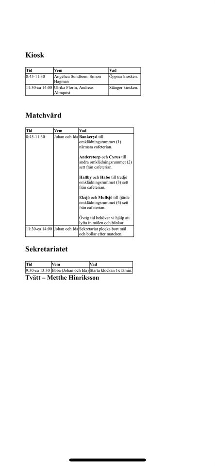 Godkväll! Då vi inte har fått in några frivilliga som kan hjälpa till på loppisen får vi gå i bokstavsordning i laget En del har hört av sig om att man inte kan på grund av annat vilket är okej De som kommer få hjälpa till på lördag är föräldrar till: Judith Axell Cornelia Backman Irma Brengesjö Om ni som blivit tilldelade detta inte kan så får ni själva byta med någon annan i laget Ha en fortsatt fin kväll! P10 (Födda 15/16) 18 feb 2024 2kommentarer