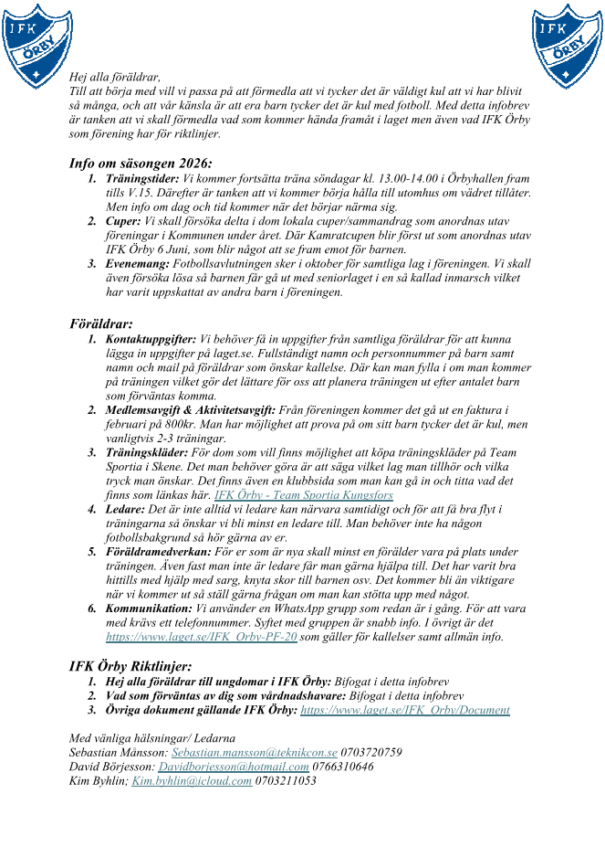 Klicka på bekräftelselänken i det mejl vi skickat dig för att börja ta emot uppdateringar från IFK Örby PF-20.