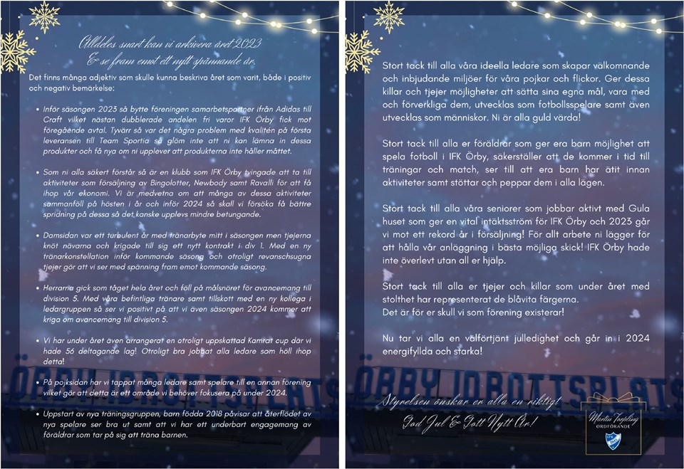 Styrelsen önskar Er ALLA en riktigt God Jul & Gott Nytt År! IFK Örby 21 dec 2023 1kommentar