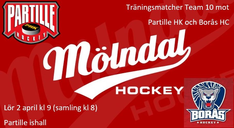 Hej, Vi fick en hastig inbjudan att komma till Partille för ett mini-sammandrag och det vill vi så klart. Kallelse går ut till aktiviteten och hoppas så många som möjligt kan trots kort varsel. Vad: Mini-sammandrag. Vi spelar 2 matcher, 2x20 min på helplan. När: Lör 2 april kl 9 (samling kl 8). Första matchen är mot Partille kl 9 och sedan spelar vi mot Borås kl 10:30. Var: Partille ishall Dom flesta har sin utrustning i förrådet. Det går bra att åka dit och be vaktmästaren öppna men jag kommer att vara på plats i hallen tors 31/3 kl 17-18 (minst) så om möjligt så hämta era prylar då. Vi har ordinarie träning samma dag med start kl 12. Vi ställer inte in den men den är naturligtvis helt frivillig och det finns ingen förväntan att man ska deltaga på den. Men för den som är sugen på att kasta sig i bilen och köra direkt från match i Partille till träning i Åby så är det fritt fram :-) Så den som såg fram emot en sovmorgon på lördag får tänka om, nu kör vi! Go Mölndal! //Team 10