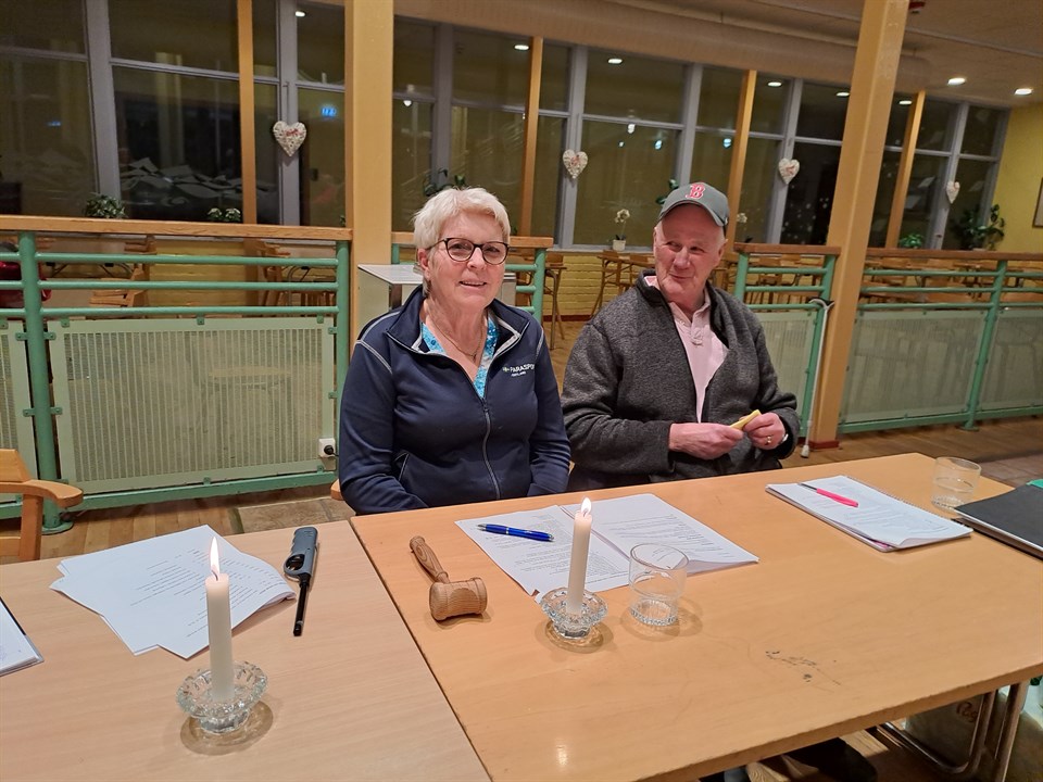 Årsmötet hölls 2 mars på Rondo i Klintehamn. 30 personer var närvarande, varav 28 medlemmar. Aina Lindgren ledde årsmötet som inleddes med smörgåstårta och dryck. Johnny Lundin avgick ur syrelsen och Lena Hjorter valdes in i hans ställe, Lena valdes också till vice ordförande vid det konstituerande mötet som hölls direkt efter årsmötet. Styrelsen för 2024: Stefan Bodin, ordförande Lena Hjorter, vice ordförande Einar Jakobsson, kassör Gunvor Malmros, sekreterare Agneta Falk, ledamot Petra Jakobsson, ledamot Åke Jakobsson, ledamot Många medaljer delades ut till glada vinnare. Nu fortsätter arbetet med träningar och tävlingar. På bilden ses Aina Lindgren, mötesordförande och Stefan Bodin, föreningens ordförande. Foto: Gunvor