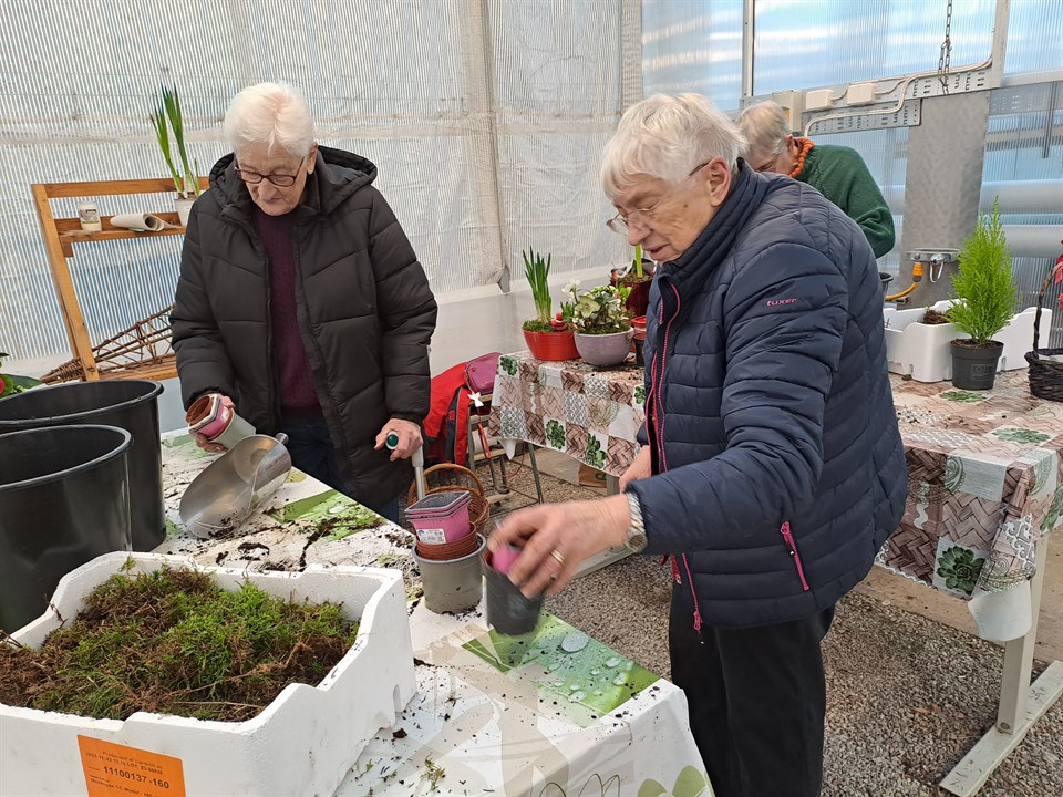 Idag, 20 december var vi, sex medlemmar från IF Murgrönan. på Suderviljan i Klintehamn och tillverkade julgrupper. En rolig tradition före jul, som har pågått i många år. Efter en timmes jobb i växthuset var det gott att komma in i värmen till kaffet och skinkmackan.