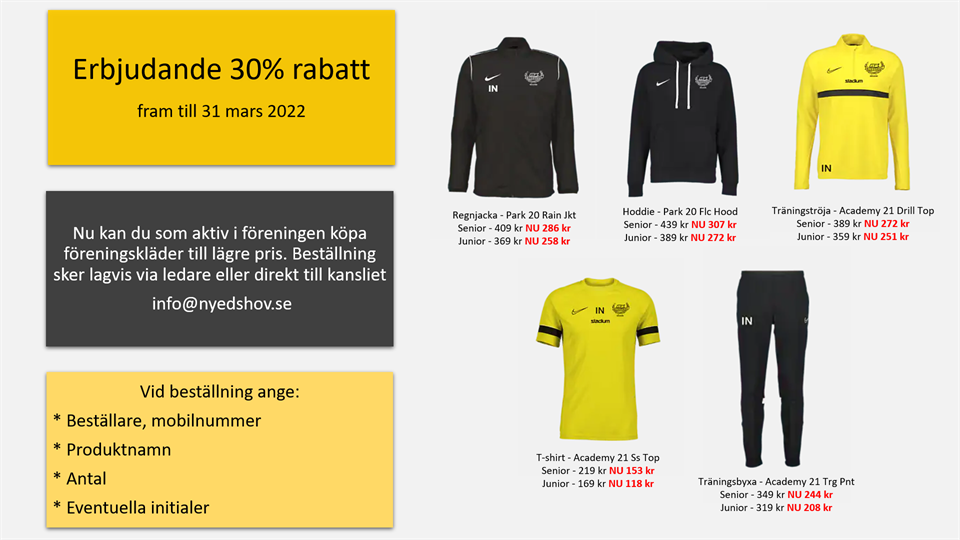Butikerna och stadium.se är laddade med säsongens nyheter och denna kupong ger er medlemmar 25% rabatt på fotbollsskor. Passa på, rabatten gäller mellan 1/3-31/5 2022. Kupongen gäller både i butik och online. För beställningar på stadium.se skriver ni in rabattkoden och i butik visar ni upp kupongen i kassan. Som förening uppmanar vi er medlemmar att stödja IF Nyedshov genom att koppla ert eget Stadium-kort till "Stöd din förening". /IF Nyedshov Flickor 2014 - 2015 11 mar 2022 0kommentarer