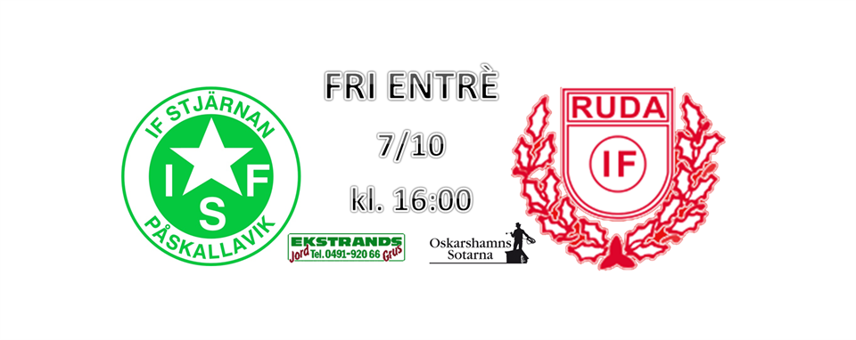 På lördag 7/10 klockan 16:00 är det dags för säsongens sista match. Vi gästas av suveräna seriesegrarna Ruda IF. Vi hoppas att det bjuds på fin fotboll i den sista matchen ute på Örnehed. Vi bjuder även på fri entré. Matchens bollsponsorer är OSKARSHAMNSSOTARNA och EKSTRANDS JORD & GRUS Prognosen säger sol, men aningen kallt, så på med en varm jacka och heja fram grabbarna en sista gång för i år. Varmt välkomna! Herrar 5 okt 2023 0kommentarer