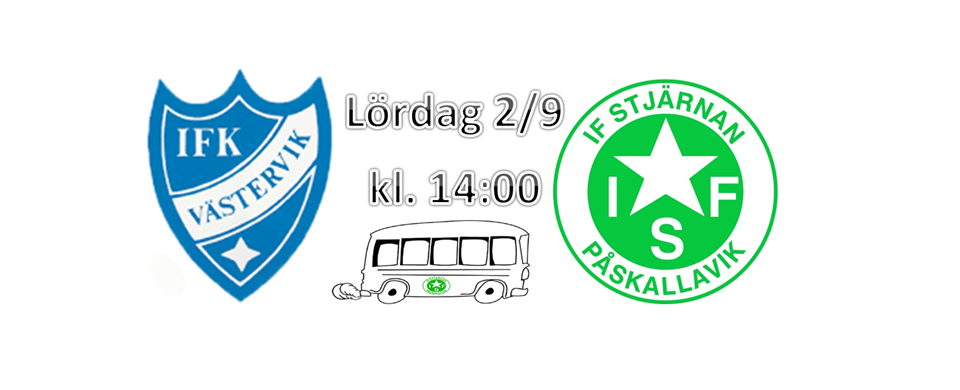 Imorgon lördag åker vi till Västervik för en mycket tuff bortamatch mot topptippade laget IFK Västervik på Bökensved. Ett lag som vi vann emot hemma i våras med 4-1 så vi kan nog räkna med ett revanschsuget hemmalag. Vi åker självklart buss till matchen, så vill man som åskådare åka med i bussen är det bara att skicka ett sms till Nisse på 0709314691 och var på plats när bussen avgår: Kyrkan i Påskallavik kl. 11:30 Arena Oskarshamn kl. 11:45. Herrar 1 sep 2023 0kommentarer