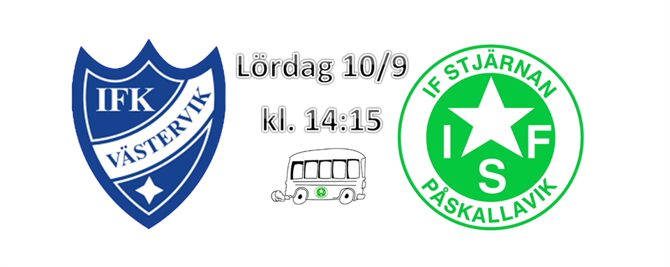På lördag 10/9 är det dags för oss att åka till Västervik för en mycket tuff och spännande uppgift. Matchen spelas klockan 14:15 På Örnbäcken. Vi kommer att åka buss till Västervik, och supportrar får gärna följa med i bussen. Det enda man behöver göra är att skicka ett sms till Nisse på 070 931 46 91 samt vara på plats när bussen ska avgå. Bussen går från kyrkan i Påskallavik klockan 11:45 och Arena Oskarshamn klockan 12:00.