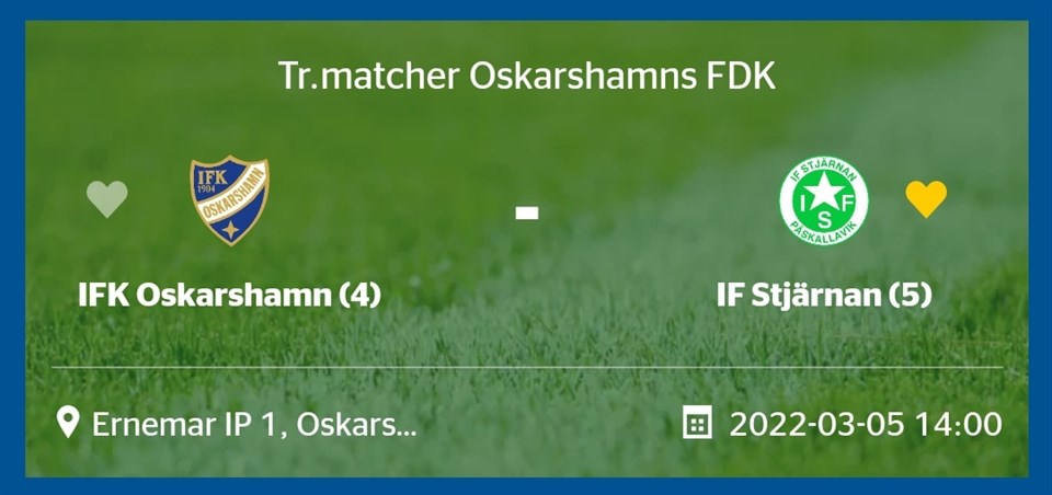 Imorgon lördag 5 mars klockan 14:00 spelar vi årets andra träningsmatch. Denna gång möter vi div.4-laget IFK Oskarshamn ute på ernemar IP. Blir en tuff men rolig uppgift! Herrar 4 mar 2022 0kommentarer