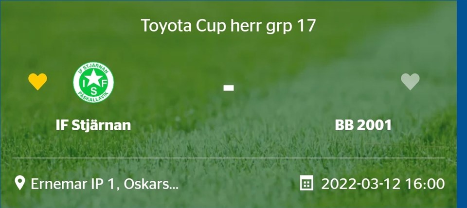 Imorgon lördag 12 mars klockan 16:00 spelar vi årets första tävlingsmatch ute på Ernemar IP. Det är första omgången av Toyota Cup (Smålandscupen) och BB2001 står som motståndare. Varmt välkomna! Herrar 11 mar 2022 0kommentarer