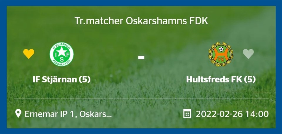 Imorgon lördag 26 februari klockan 14:00 spelar vi årets första träningsmatch. Matchen spelas på Ernemar IP och vår seriekollega Hultsfreds FK står som motståndare. Ska bli intressant att se vad vi har att arbeta med framöver, många nya ansikten i morgondagens match. Varmt välkomna ut till Ernemar i den tidiga vårsolen!