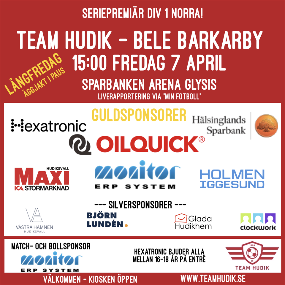 Välkommen till Sparbanken Arena på fredag kl.15:00. Då sparkar vi igång säsongen och möter Bele Barkarby FF i premiärmatchen Match och bollsponsor är Monitor Erp System som kommer utse matchens lirare i båda lagen. Hexatronic bjuder alla upp till 18 år på fri entré. Kiosken serverar kaffe, te/ kaka, korv m bröd, toast och godsaker. Där kan du även köpa Årskort till våra hemma matcher. I halvlek har du dessutom chansen att VINNA ett Årskort. Då kör vi Åggjakt för publiken- påskhelgen och premiären till ära. 5 påskägg ska hittas. Mer info om det får du på plats. Så- kom till Glysis och stötta vårt damlag, ta en fika och hitta DITT påskägg. Vi ses! Du kan även följa matchen via MIn Fotboll, om du inte har möjlighet att vara på plats. F13/2013 5 apr 2023 0kommentarer
