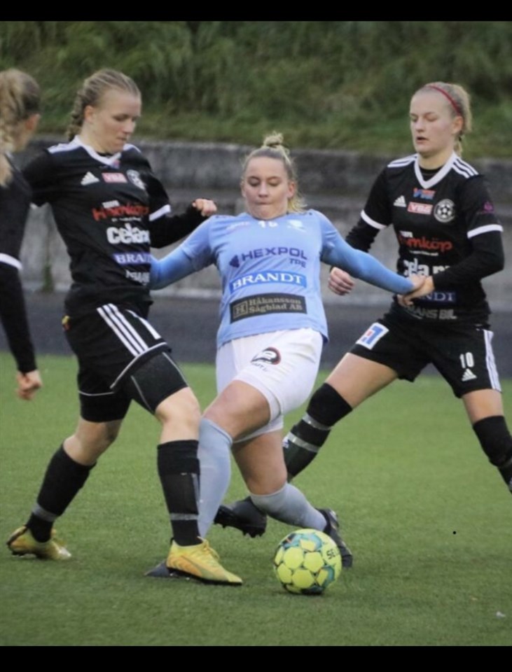 If Viken – Vänersborg FK 3-4 (1-2) Vädrets makter går inte att påverka. Regnet hade öst ner i flera dagar och vår sista hemmamatch för säsongen gick tyvärr inte att spela på vår hemmaplan, Rösvallen. Matchen flyttades istället till Bengtsfors konstgräsplan på Långevi och vi vill rikta ett stort tack till Bengtsfors IF för bra samarbete. Efter att ha skuggat de absoluta topplagen Skoftebyn och Vänersborg under en längre period gick vi efter nio matcher upp som ensam serieledare med endast två omgångar kvar att spela. Matchen inleds med två snabba mål av Vänersborg. Vi blir rejält straffade av egna misstag och får en brant uppförsbacke att hantera. Vänersborg är tunga att möta, spelar ett enkelt och rakt spel, ligger oftast rätt i positioner och har riktigt jobbiga forwards att hantera. De ljusblåa arbetar sig dock in i matchen, har några fina skott som mycket väl hade kunnat resultera i mål och strax före halvtidsvilan kvitterar vår forward Wilma Enarsson till 1-2. Andra halvlek är jämn och efter 20 minuter utjämnar vi till 2-2. Ida Kjellman viker in från vänsterkanten och skickar iväg ett distansskott som sitter strax under ribban. Stärkta av målet fortsätter vi att arbeta hårt, Vänersborg skapar dock tryck med några hörnor och frisparkar som lyfts in i straffområdet men vi reder ut situationerna som uppstår. Vid en av situationerna är det en Vänersborgs spelare som rullar bollen förbi Alice mot mål men den stutsar rakt ut ifrån vänstra målstolpen och Alice plockar upp den och sätter igång spelet. Då vinkar linjedomaren och menar att hela bollen har varit över mållinjen och det döms mål till Vänersborg. Sju minuter senare utökar bortalaget till 2-4, en rejäl smäll igen att resa sig efter, men återigen visar spelarna prov en imponerande attityd och inställning. Wilma Enarsson gör 3-4 efter en fin kombination av passningar, hon är stark i straffområdet och lägger behärskat in bollen i målvaktens högra hörn. Sista tio går vi för ytterligare mål och på övertid skapar vi tryck i Vänersborgs straffområde och får chansen att utjämna på en straff. Vänersborg är bra och vi faller lite på egna misstag men spelarna gör en imponerande insats och jobbar sig tillbaka flera gånger i matchen trots jobbiga bakslag. Återigen visar de en makalös karaktär och ger aldrig upp. Vi går poänglösa ifrån matchen och vi får uppleva ett grymt slut på en spännande fotbollsmatch. Jag tycker laget förtjänar mer, en tuff förlust som gör ont men vi kommer tillbaka. Förlusten är vår första i seriespelet sedan 26/4 2019, året då vi startade Damlaget. Lite drygt två år senare är vi med och slåss om platsen till division 1. En fantastisk prestation av detta unga lag. Efter matchen har vi samma poäng som serieledarna och vi har fortfarande chansen att stå som tabelletta när säsongen är över. Nu laddar vi för avslutningen mot Skoftebyn på bortaplan.