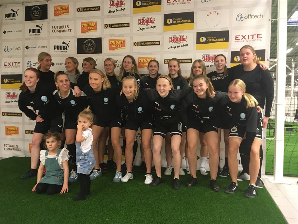 Spelarna som avslutade en kanondag på Fotbollskompaniet i Trollhättan. Lördagen den 1/2 körde vi en heldag tillsammans. Fotbollsträning på morgonen och sedan en god lunch samt efterrätt på Stadshotellet. Därefter avslutade vi dagen med en femkamp på Fotbollskompaniet. Kul anläggning för oss som tycker fotboll är nummer 1. Tack alla tjejer för en riktigt bra dag. Vi gör det igen. // Marie, jonas o Patric